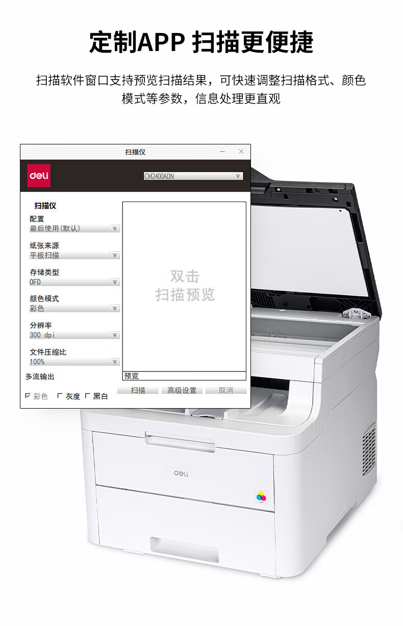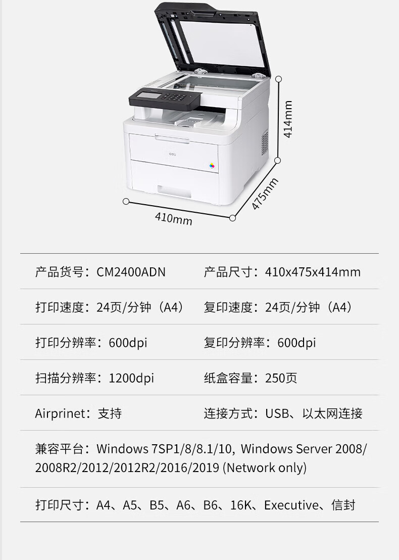 deli得力 CM2400ADN彩色三合一多功能激光打印机复印机扫描机一体机 支持Windows、UOS、麒麟操作系统