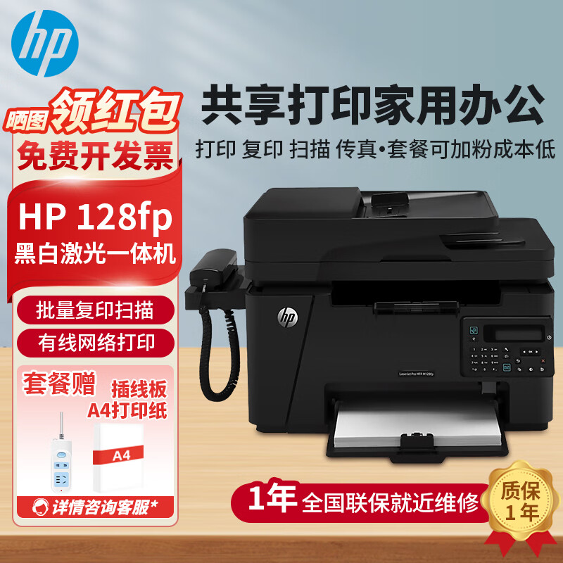 惠普(HP)M126a/nw 128fw/fn/fp 115w/117w A4黑白激光打印一体机 办公家用 M128fp 有线网络+输稿器+四合一 全新国行标配(含原装